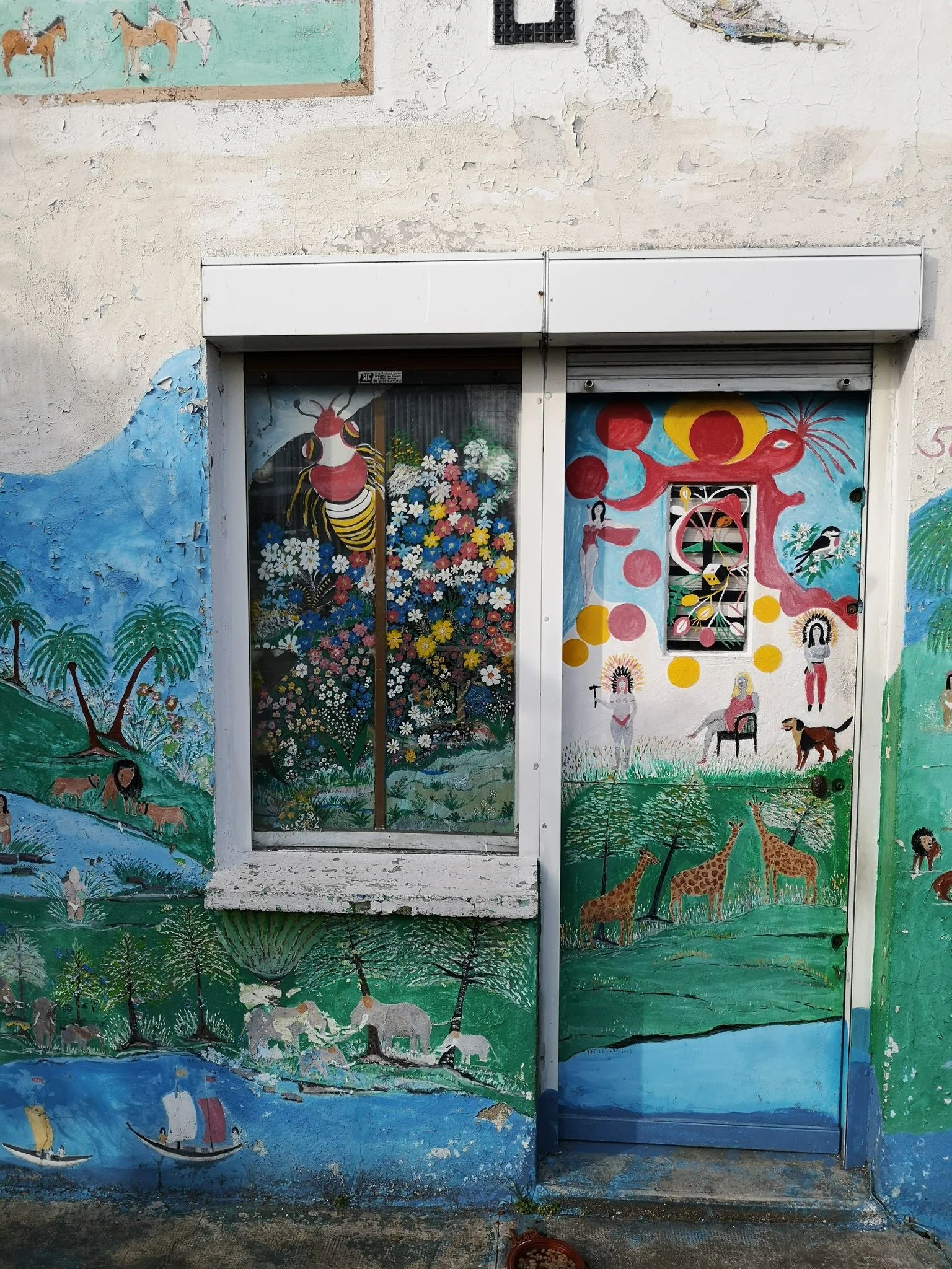 À la deuxième tentative Henri sortit. À son air renfrogné, je compris qu'il ne tenait pas particulièrement à me recevoir et s'étonna que je manifeste le moindre intérêt pour son œuvre. Il avait commencé à peindre les murs extérieurs de sa maison à la fin des années 50. Chaque année il recouvrait le tout d'un badigeon blanc pour effacer les anciennes fresques et en réaliser de nouvelles, activité qu'il n'avait plus renouvelée depuis quelques années déjà. À 89 ans, il n'avait tout simplement plus l'envie ou même l'énergie à déployer pour perpétrer cet acte créatif. «Qu'est ce que vous leur trouvez à mes peintures? Vous trouvez ça bien? Je trouve ça plutôt laid, elle n'ont pas été repeintes depuis des années. Vous êtes venue jusqu'ici pour ça?».