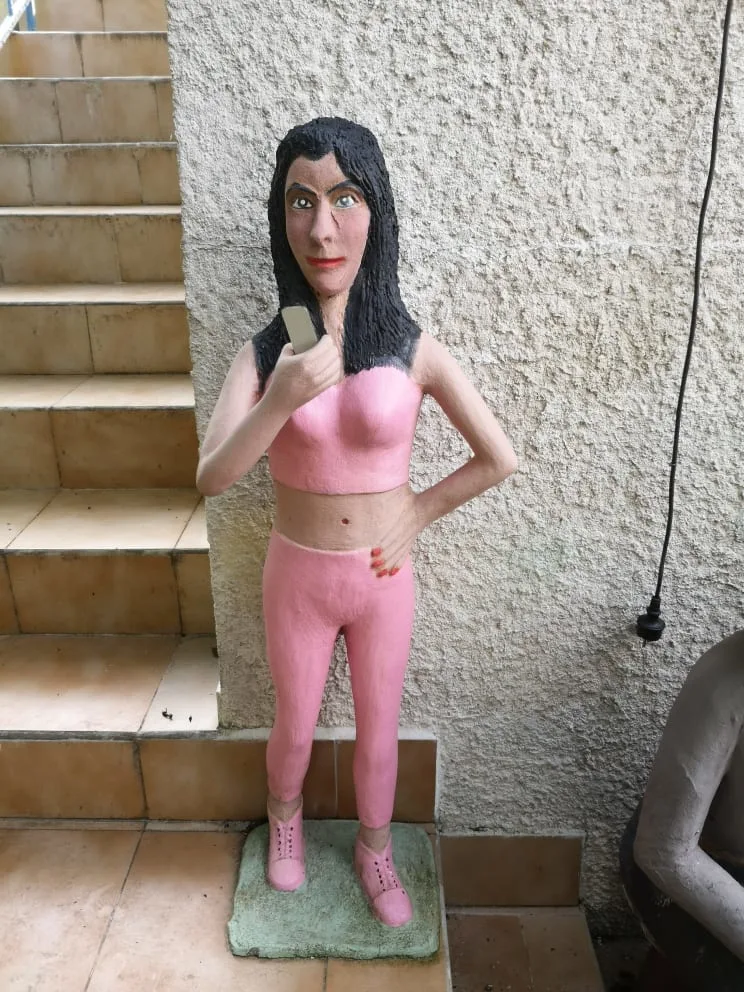 En dépit de leur style naïf, les premières sculptures en ciment de Calogero étaient particulièrement réalistes. Les sujets abordés étaient issus de la culture médiatique: Louis de Funès, Charlie Chaplin, Don Quichotte, Shrek, Tintin... Calogero se met à tourner les pages d'un portefolio (réalisé par ses enfants) retraçant l'histoire de son œuvre sculptée, et me fait découvrir tout un pan d'une œuvre aujourd'hui évanouie.