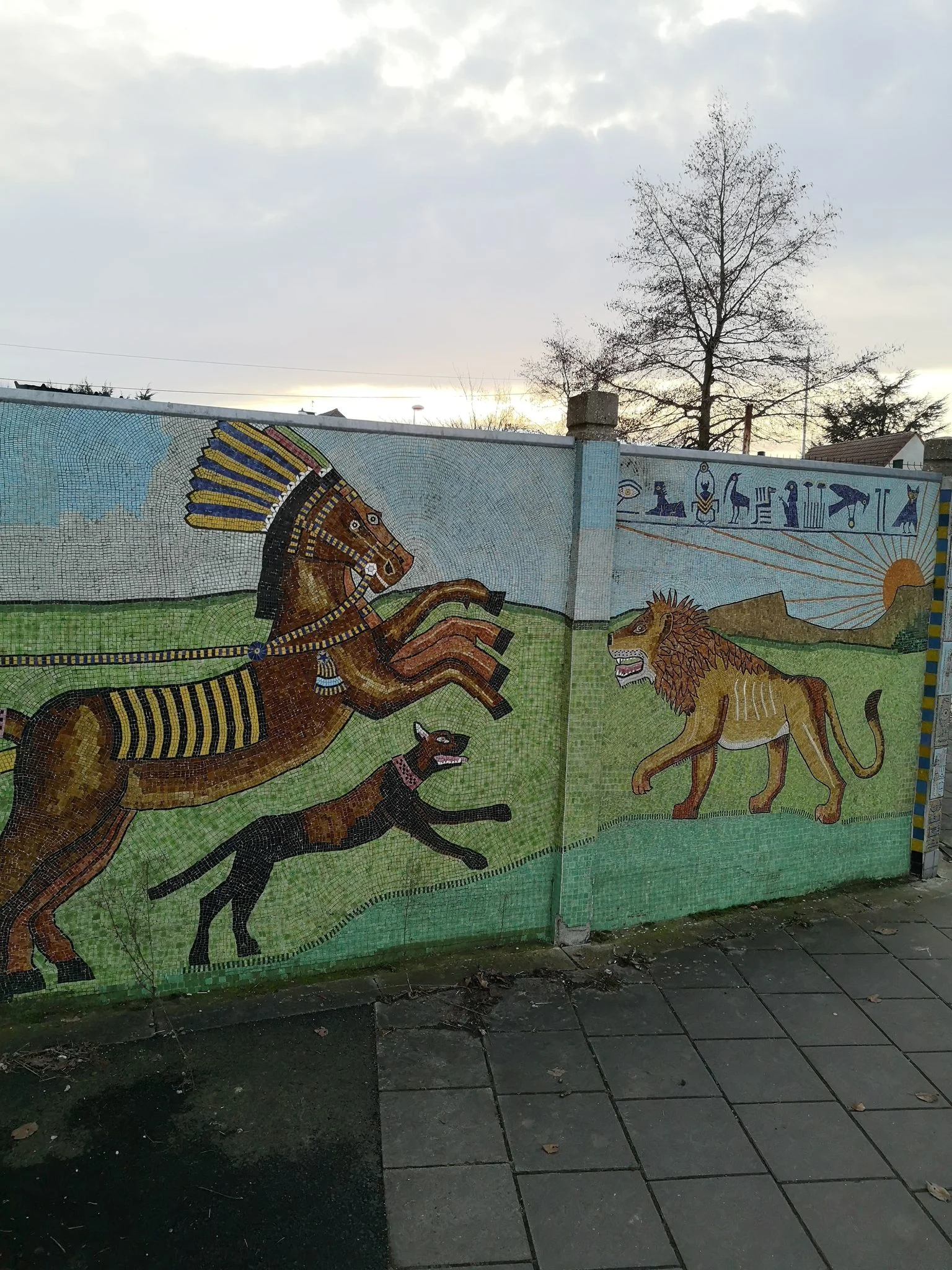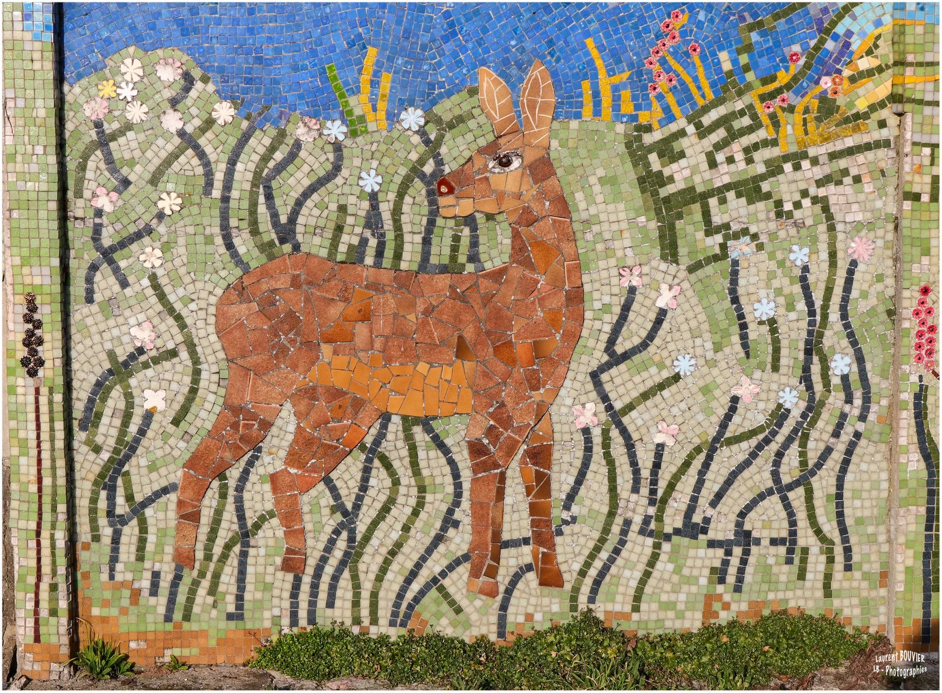 "Rémy Callot est né à Oignies le 27 avril 1926 et mort à Carvin le 7 octobre 2001. Durant sa jeunesse, il est accidentellement amputé d’un avant-bras suite à un accident. Adulte, il est employé au bureau d’études des Houillères du bassin du Nord-Pas de Calais et s’installe à Carvin en 1966 dans un baraquement acheté à son employeur après cette cette date. Autodidacte, il apprend la mosaïque dans un atelier des Houillères et suit des cours d’art proposés par son entreprise. Il acquiert un four et le matériel nécessaire à la confection de céramique et s’adonne au dessin, à la gravure, à la sculpture sur bois et à la réalisation d’objets en céramique (mis au jour après sa mort). Il puise son inspiration dans ses voyages aux quatre coins du monde, dont la Sicile et la Grèce où il découvre des sites réputés pour leurs mosaïques. Très curieux, il se documente aussi dans des livres. Plusieurs thèmes sont évoqués sur les murs d'enceinte de son jardin : les animaux mythologiques, la beauté de la nature, le Moyen-age et l'Egypte ancienne.