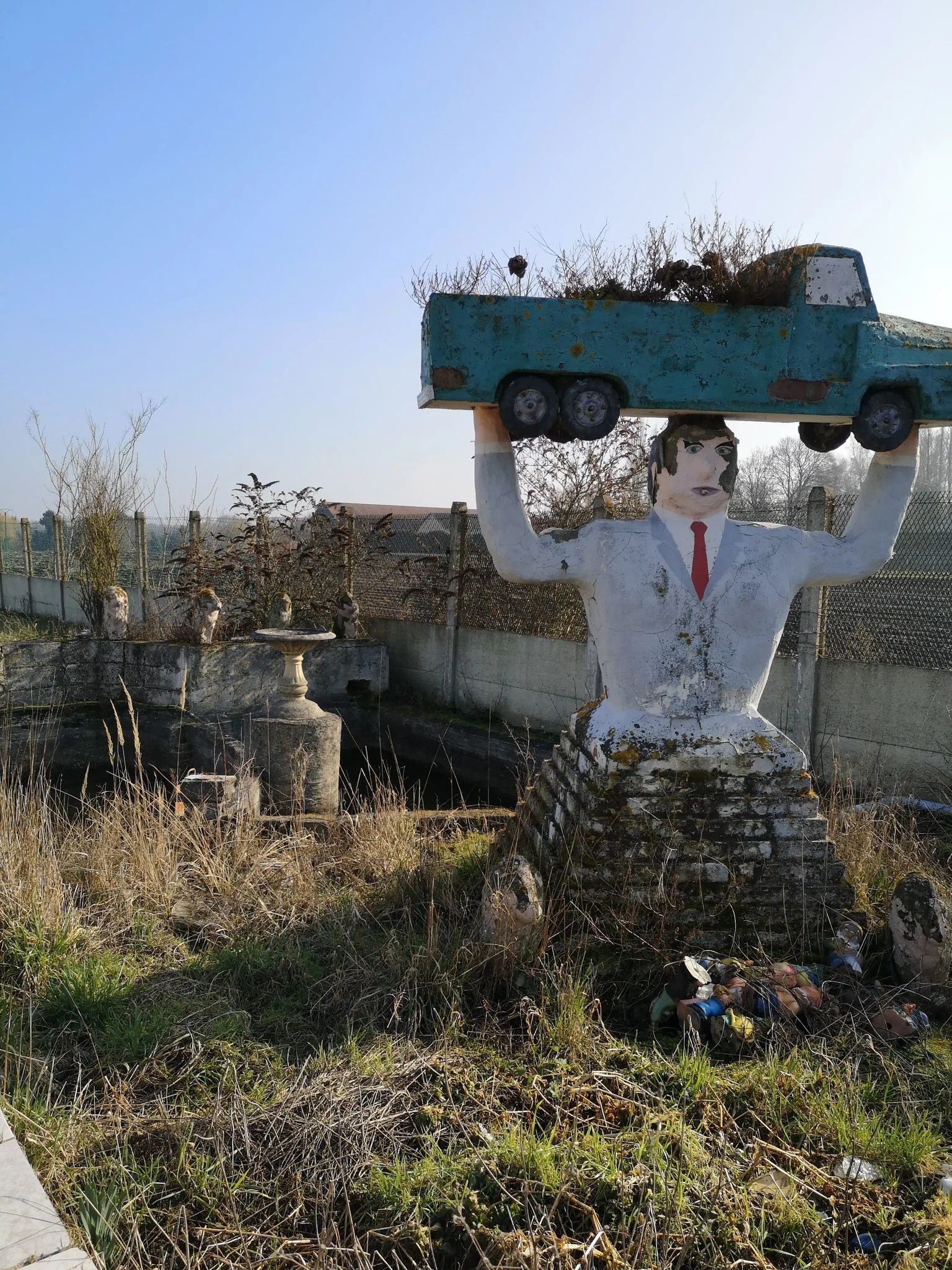 De l'environnement d'origine, il n'y a que le géant Arthur Bils qui a conservé ses couleurs claires, dans son « costume-cravate » bien taillé et son expression sérieuse rappelle un peu celle de son maître d’œuvre. A propos de cette sculpture, A. Lefranc se rappelle : «Je me dis tout le temps, il penche, il va tomber un jour le bonhomme: il y a des fers à béton aussi gros qu’un bâton qui passent à travers le col et ça rejoint le corps; j’ai creusé dans l’argile, j’ai mis des fers à bétons, j’ai fait un coffrage, j’ai coulé le béton; les fers à bétons dépassaient et, à partir de là, j’ai fait des jambes et des pieds et j’ai construit le géant, il était plus haut. Pendant le séchage, il y a eu une tempête et tout s’est écroulé. Heureusement j’ai récupéré le buste et je l’ai posé sur une pyramide tronquée. Le camion n’en a pas l’air mais il est en briques recouvertes de ciment et pour les roues, j’ai récupéré les roues de vélos d’enfants, je les ai coupées en deux puis j’ai coulé du béton dedans, par-dessus j’ai fait l’imitation de la couleur d’un pneu». Alain LEFRANC est décédé le 3 décembre 2022 à 75 ans, à Berchères-Saint-Germain"