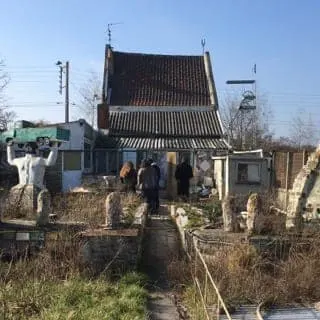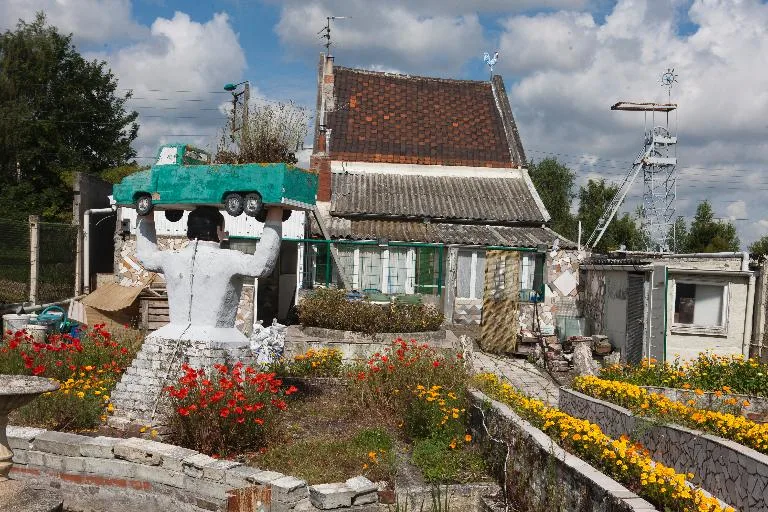 Aujourd’hui âgé de 64 ans il est retraité depuis environ 10 ans. Il a commencé la décoration de son jardin dans les années 1975; l’agencement des chutes de carrelage date des années 1980 et le personnage en ciment date de 1990 environ. « Mon habitude du matin, quand je me levais le matin, mon café, mon journal, ma casquette, mes clés, j’ouvrais les portes et faisais sortir mes chats et après je me mettais au boulot, ma bétonnière tournait, allez et puis voilà, c’était ma passion. »