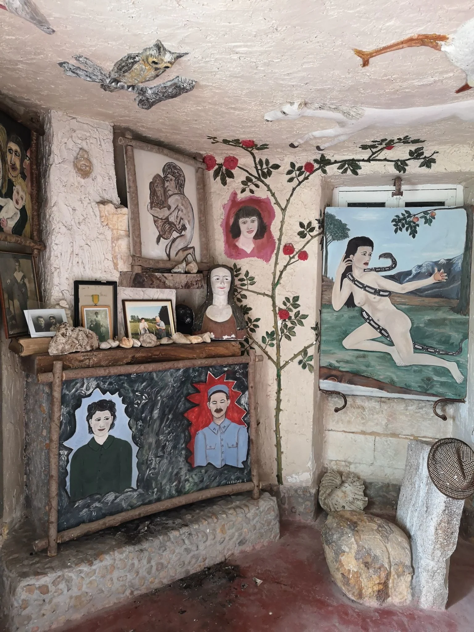 Au-dessus de la fenêtre de sa chambre, Lucien Favreau rendit un hommage au facteur Cheval: « Mon ami, mon chien, mon maître Cheval » et peignit le portrait de l'artiste drômois. « Nous lui avions offert un livre sur le facteur Cheval, c'est comme ça qu'il l'a découvert », précise Léon, le mari de Mireille.