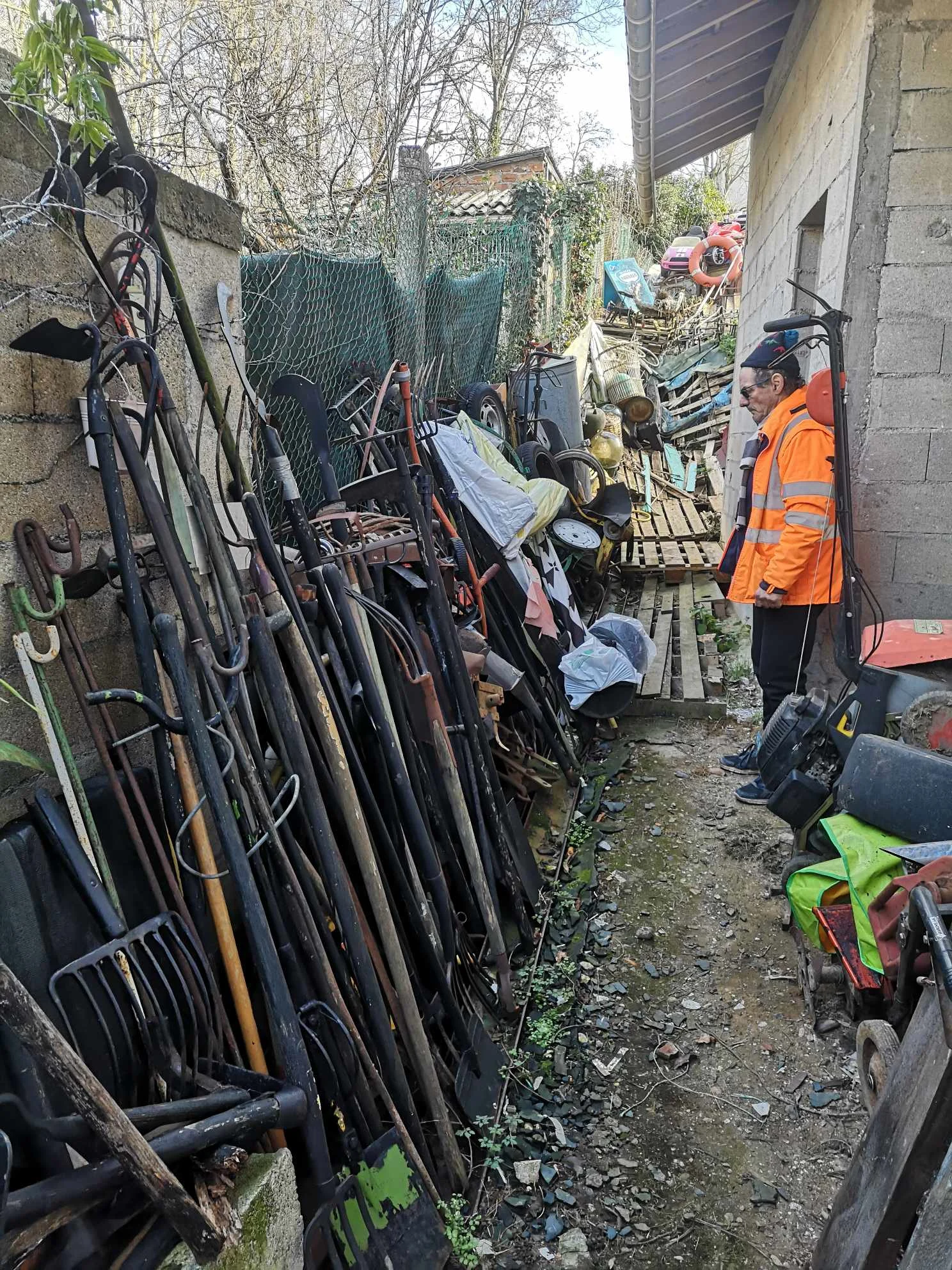 C'est à ce moment que Serge Blanchart, vêtu d'un gilet de sécurité jaune pétaradant, émerge de ce capharnaüm pour venir à notre rencontre. Il nous propose de faire un tour du propriétaire, des amas de toutes sortes et de toutes parts prolifèrent autant à l'intérieur qu'autour de la propriété: des milliers de collections de bons au porteur, des dizaines d'instruments de musique, des centaines de revues, des pelletées d'outils agricoles, des tas de vélos, des flopées de lits d'enfants, des palanquées de marmites. Serge accumule certes mais dans le but de redonner vie aux rebuts du quotidien d'où cette nécessité de le conserver. Contrairement aux accumulateurs qui entassent généralement leurs objets en cachette, poussés par un besoin compulsif qu'ils qualifient eux-mêmes de honteux, Serge Blanchart les exhibe fièrement.