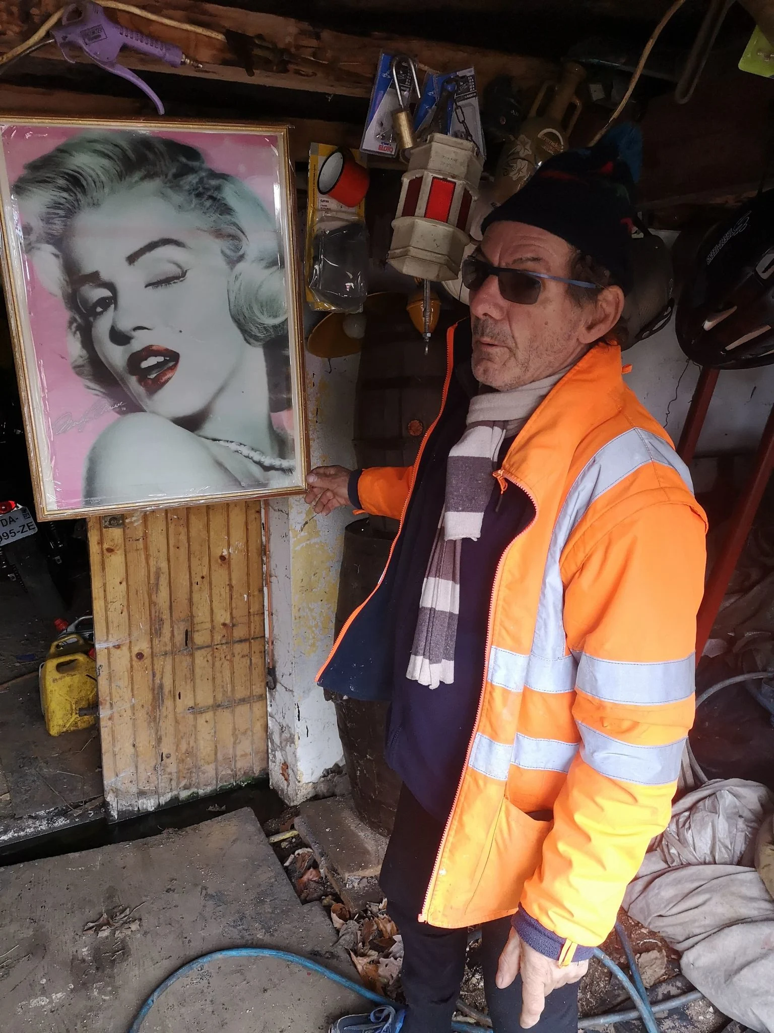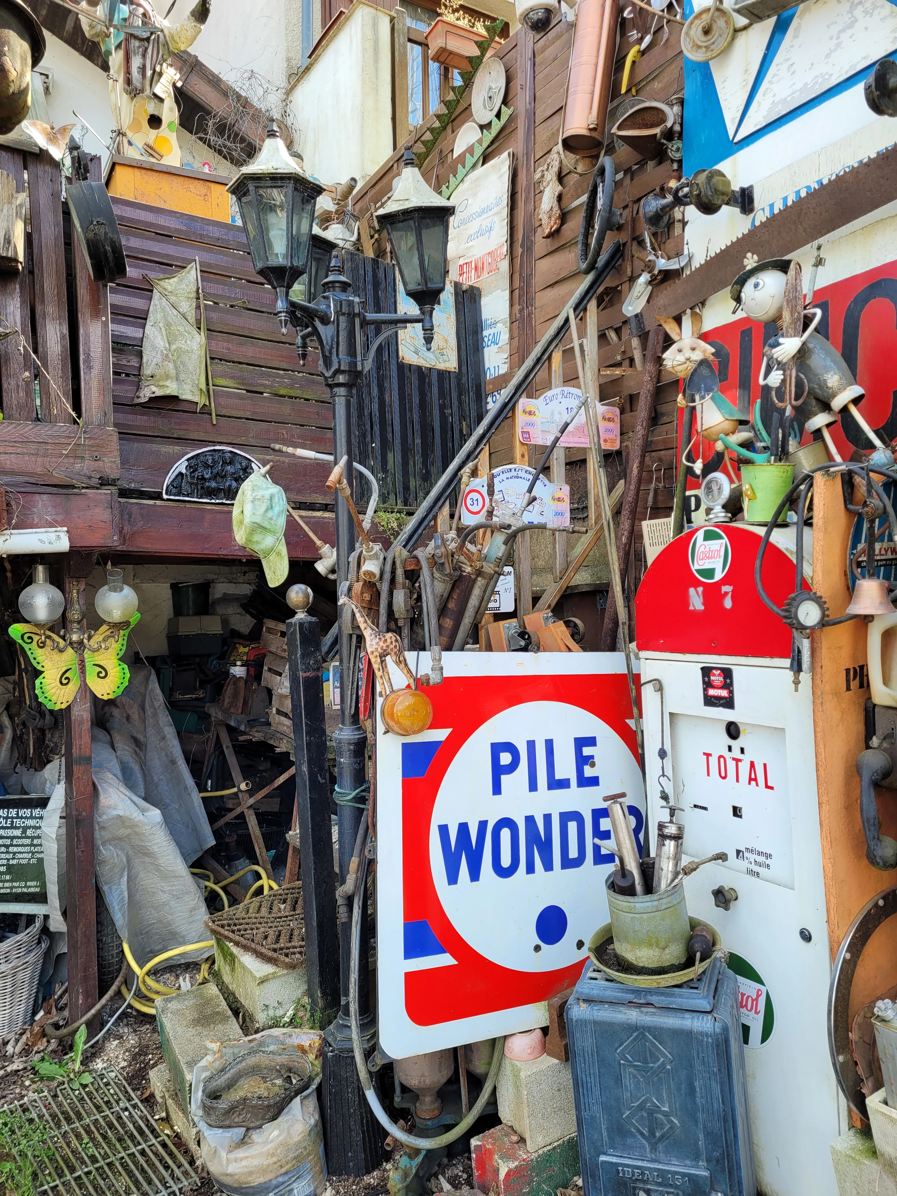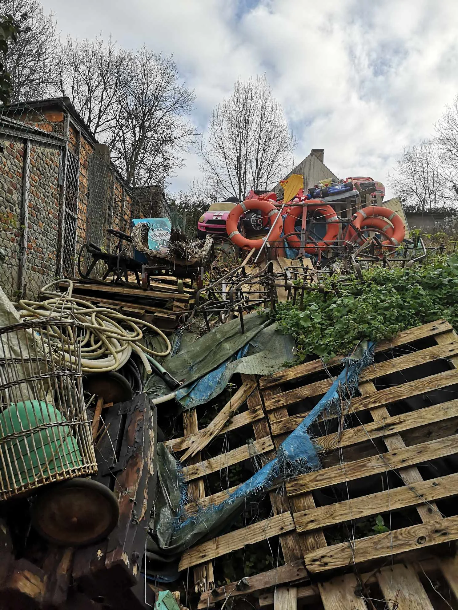 Je voulais leur montrer qu'avec rien on faisait tout. J'ai commencé en 2005 à faire tout ça, à accumuler toutes ces choses. J'aime quand les gens s’arrêtent et comme je suis bavard, je discute avec tout le monde mais je n'ai pas fait ça pour être regardé. Tu me juges ou pas, ça m'est égal. J'ai eu toutes les difficultés du monde à m'intégrer dans le coin. Je suis parti d'un arrosoir et je suis tombé dans une baignoire. Je suis parti de rien. Je suis un envahisseur, j'ai plusieurs entrepôts annexes et je ne m’arrête jamais. Tu me demandes un barbecue, je te fais un château, pour te faire plaisir. Un objet qui m'interpelle... Ça peut être une mobylette, une pompe à essence. Les gens n'en veulent plus mais moi j'y trouve un attrait. Je découvre tous ces objets, c'est un émerveillement, j'ai retrouvé une magnifique cloche, 80kg de cloche et c'était magnifique.