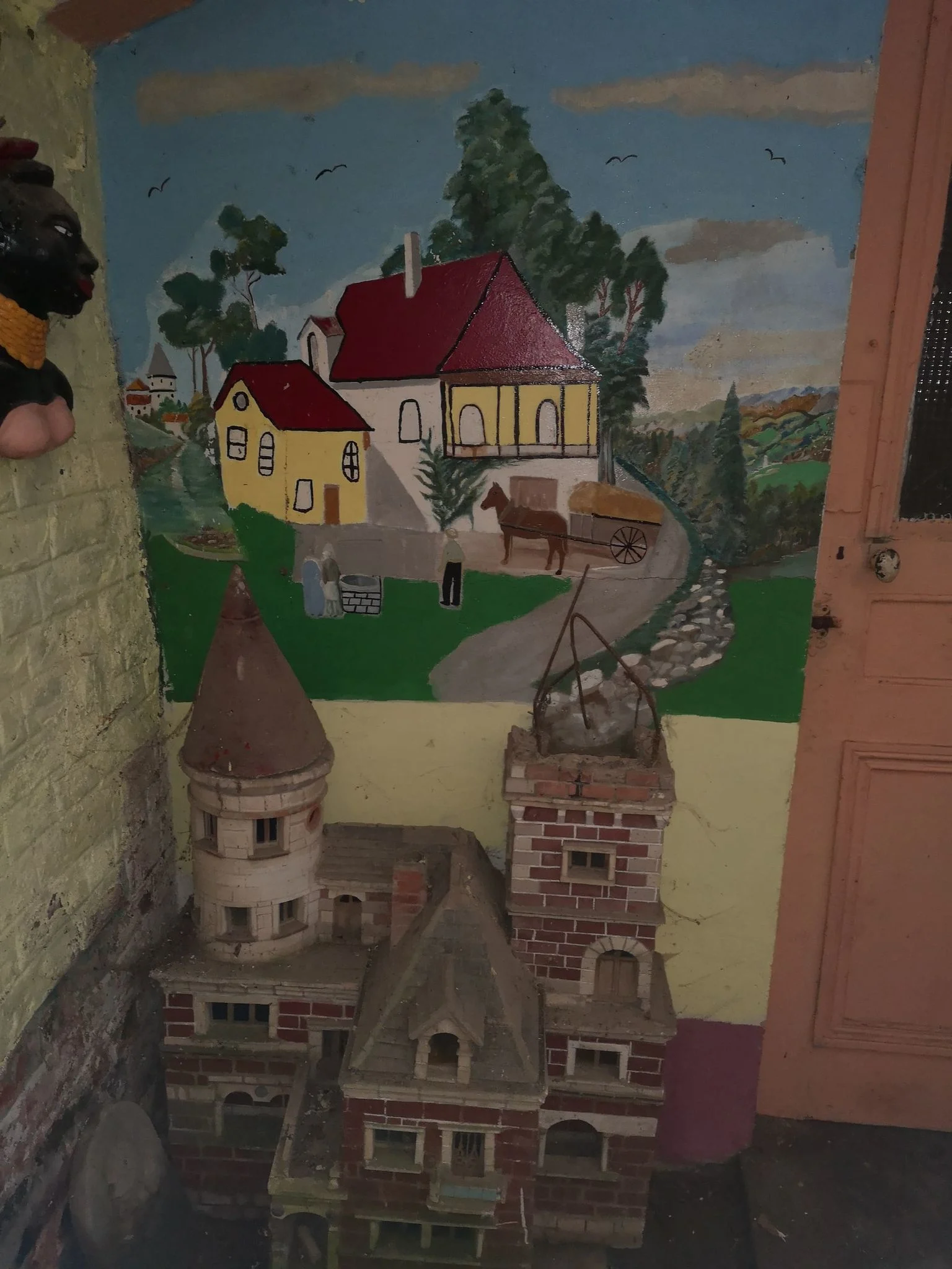 Marie-Hélène vit dans une maison emplie des souvenirs de son père. Elle ne s'est jamais vraiment remise de sa disparition me confiait sa voisine. Des mosaïques ornent les murs et les sols de la maison. Moules et assiettes de sa confection sont exhibés aux côtés des photos de famille. Mario a réalisé quelques fresques à l'intérieur de la maison ainsi que dans une cour fermée à l'arrière. Il peignait des scènes animalières, des vues maritimes ainsi que des paysages idylliques montrant des châteaux de contes de fée en arrière plan. Un château miniature en pierre était posé au sol. Je repensais à la photographie de Francis David dans laquelle on apercevait Blanche-Neige et trois nains (de sa propre confection) devant un château de même facture installés dans le jardinet devant la maison. « À l'époque, des rallyes touristiques passaient par là et nous demandaient de leur donner les noms des trois nains de jardin entourant Blanche Neige ». Cet ensemble sculpté fut un temps installé près du monument aux morts de Quesnoy-sur-Airaines. Lorsque le monument aux morts fut déplacé (pour des raisons de sécurité routière), l'ensemble réalisé par Mario fut démantelé.