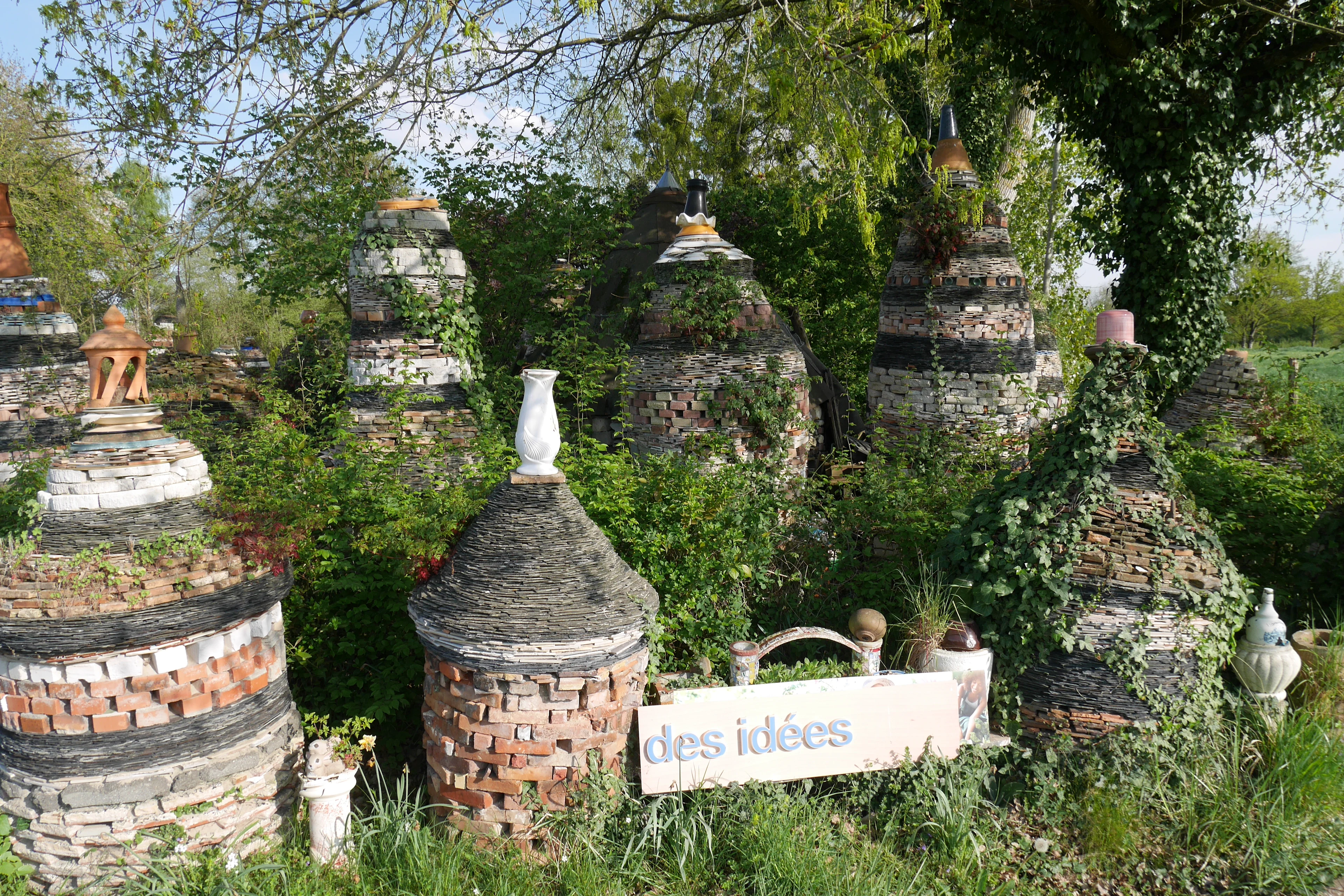 J'entre alors dans ce petit bout de terre pour explorer cet environnement. De curieux dômes de pierre jalonnent un petit sentier. Un autre ensemble d'installations plus compact se situe au niveau de l'entrée. Ces sculptures-architectures ont été réalisées au moyen d'un assemblage de pierres sèches, de briques ou d'ardoises agencées en strates successives sans qu’aucun mortier ou maçonnerie ne les relie.